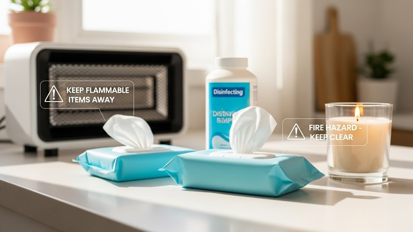 Most disinfecting wipes use mostly water combined with mild cleaning solutions. These solutions help remove germs, dirt, and surface contamination effectively. They are created mainly for cleaning hard surfaces and common touch areas. Unlike medical cleaning supplies, they are not designed for skin preparation tasks. They support hygiene routines inside homes, offices, schools, and public places. Many users compare them with professional sanitation supplies used in medical environments. Some healthcare workers compare them to surgical area disinfection tools. Others compare them with workplace personal protective hygiene products. People feel safer when they understand what they use daily. They also want to know whether heat exposure causes danger. Users sometimes place cleaning wipes near heaters, chargers, or cooking areas. That is why they want practical and clear safety awareness.