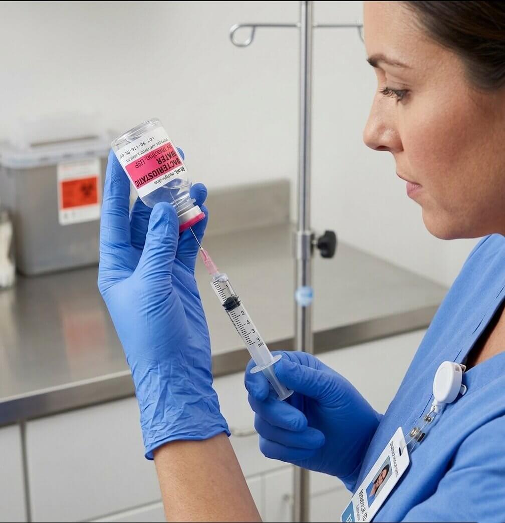 Healthcare teams also review guidance explaining safe bacteriostatic water preparation procedures.